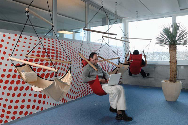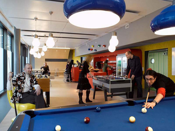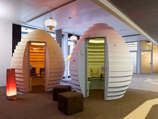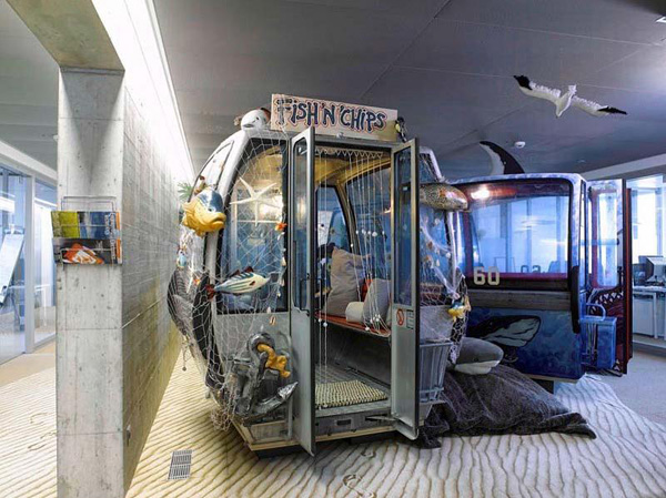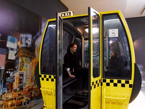 吃完之後,員工也可以到休息室閉目養神,或是到電動按摩椅上放鬆一下筋骨,在模擬成深海的靛藍色空間中,緊繃的情緒得以放鬆下來,還有被佈置成南極的極地基地,或是以纜車為造型的電話間,一切的一切,再在說明了Google有多關心員工的感受,怪不得Google會成為現在年輕人最嚮往的企業之一。