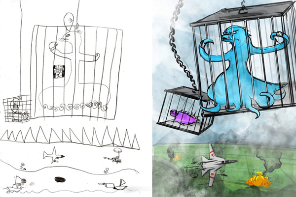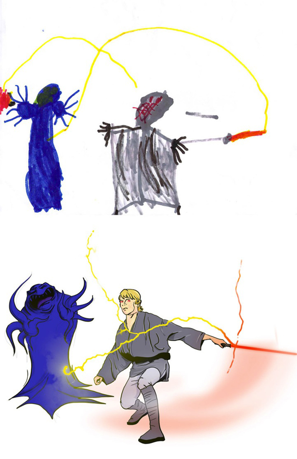 有人說每個孩子都是藝術家,只是大人的眼中看不見潛藏在他們心中的無限可能,有時候孩子們的鬼畫符,在有慧根的藝術家眼中,就是一張張潛力無限的畫作,像是大人物去年曾經介紹過的「愛塗鴉的小孩都是未來的偉大插畫家!」,小朋友的隨手塗鴉在插畫家Dave Devries的巧手之下,變成了一幅幅超有藝術價值的奇幻插畫,事隔一年,又有另一位插畫家Garrett Miller玩起同樣的把戲,收集了許多小朋友的塗鴉畫作,把他們的塗鴉全都變成了超具戲劇張力的有趣插畫喔!