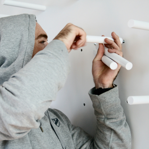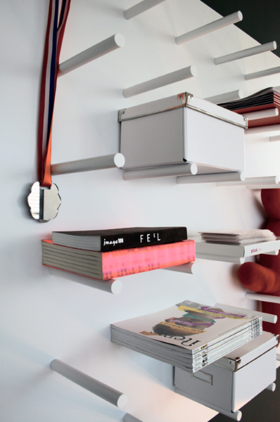 造型相當有創意的書架棍,其實它的靈感來自於中國街道上常可見的曬衣棍,由一根根的白色木棍組成的書架,只要將書本橫放就可以成為層版,除了放書本之外,棍子還可以掛上雜物像是購物袋、衣架等,一時興起還可以在家裡練練詠春拳(誤),能文能武的書架棍,就是你家中最吸睛的裝飾品喔!