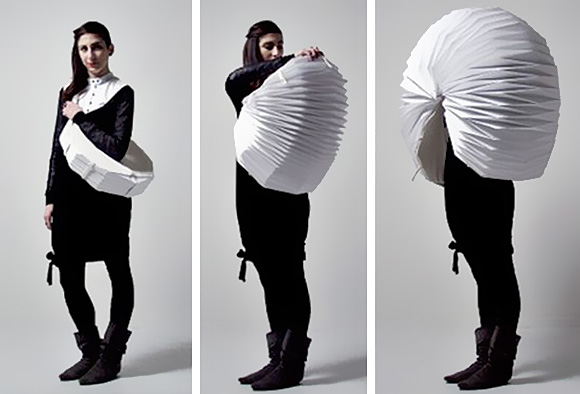 如果你想逃離世界幾分鐘什麼是最好的事是什麼?由設計師“Veasyble”設計的隱私殼像是一個手風琴般摺疊的頭套,可以在這人來人往的都市裡建立你一個私人的小小手風琴庇護所,讓你擺脫這瘋狂的世界幾分鐘。身處在車水馬龍的世界裡,但卻想擁有一個屬於自己的私人空間,這個奇怪又有趣的想法,設計出了這個可以暫時逃離人群的套子(這個東西讓你看起來像Lady Gaga的小怪獸)