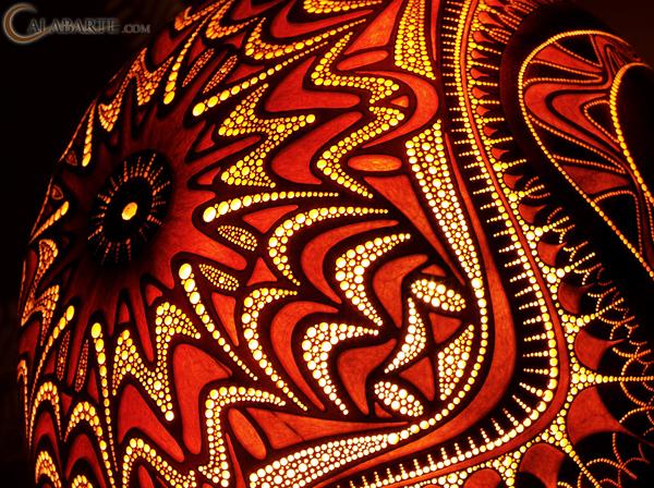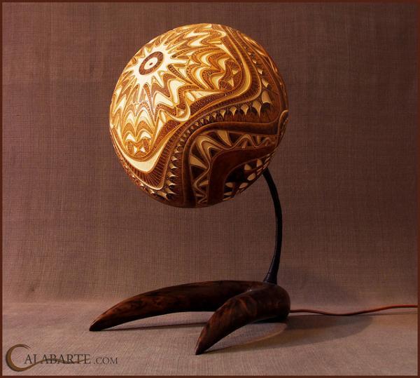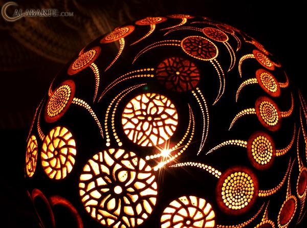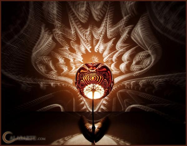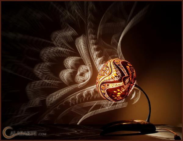 Calabarte是來自波蘭的一位藝術家,他的專長很特別,就是在葫蘆上雕刻。這些葫蘆來自塞內加爾,並且用來作為夜燈的材料。雕刻好的葫蘆不只是作為裝飾用途,當夜燈在黑暗中被開啟,光線就會透過葫蘆在牆上產生不可思議的紋路,替你的房間製造出典雅的氣氛。如果不嫌麻煩,替它裝個電動轉軸,還能充當旋轉燈幫你把房間變成夜店啊! XD