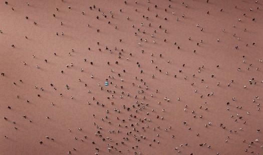 事實上,你所看到的照片每張都是Magyar,將上每張的人物照片合成成一張張鳥瞰照,再經由他的巧思組合才有辦法排列成有如畫作般的空拍視角照,其中的工程之大可能你家裡的photoshop都會跑不動吧XD