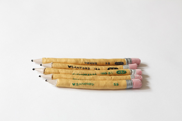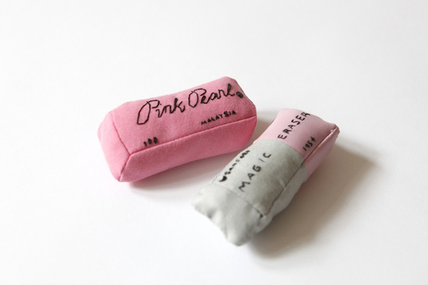 她運用了棉絮、纖維等布織品,創作了一系列包含鉛筆、原子筆、筆記本、橡皮擦等我們熟悉的課堂文具,樸實復古的模樣讓人愛不釋手,讓人不禁嘴角偷偷上揚,回想起自己的兒時回憶啊!