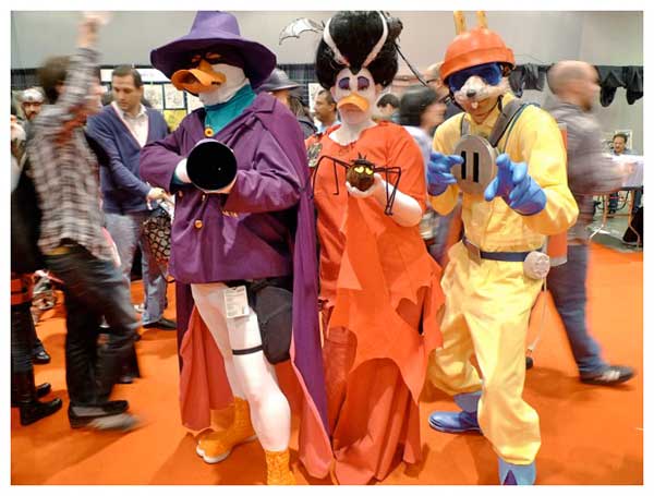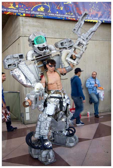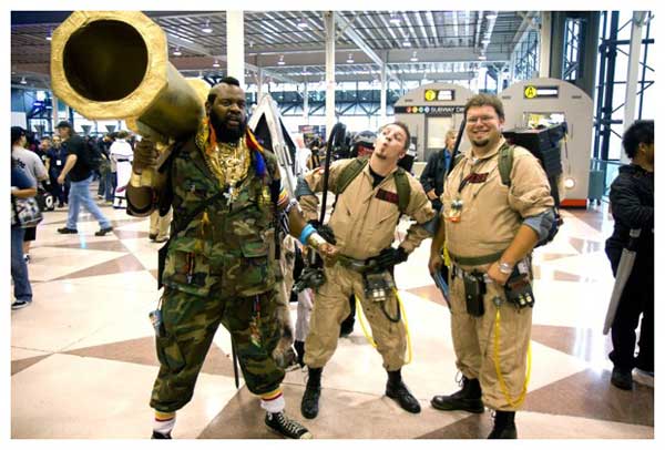 除了櫥窗那些不會動的角色,還有這些真人版的角色扮演,這些人真的都花了很多時間跟心力去製作這些服裝,看這個Mr. T 大砲先生的砲管大到都可以塞一個人進去了,還有魔鬼剋星!不知道史萊姆在哪??! C*主播對史萊姆比較有興趣…lol
