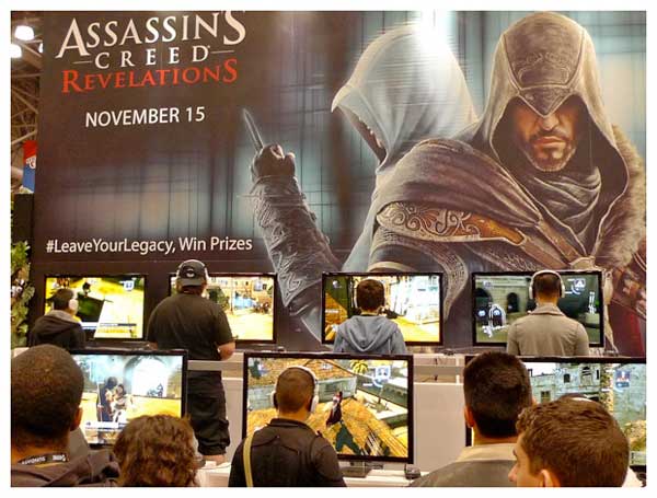 一進場迎面而來的就是電玩區!雖然說是Comic 動漫,但是電玩區卻佔了超過一半的展覽比率,所有想的到的電玩都可以在這裡看得到,各家電玩公司都使出渾身解數 設計展場佈置,除了發表秀出未來將發行的新遊戲之外,也都提供了很多station讓大家試玩。