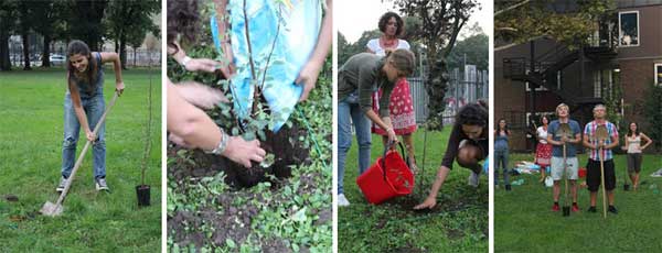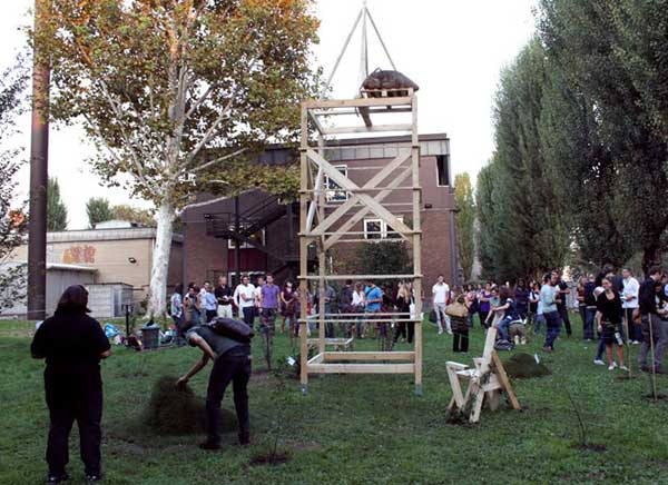 Visiondivision特別在其中四棵樹間弄了梯子,樹下也安排了椅子,等樹長高了,花開了,可以直接爬上樹躺在櫻花的懷抱中,或者坐在樹下抬頭仰望,欣賞頭上一整片粉嫩柔美的春色,嗯......就讓咱們相約在六十年後的米蘭吧!