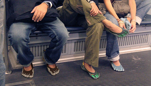 FiveFingers五趾鞋就是Vibram的創新概念商品。所謂五趾鞋,顧名思義就是穿上去還可以讓你用腳趾和朋友比YA打招呼~XD運用輕薄、耐磨的彈性聚酰胺織物,提供更好的舒適感和抓地力。如此的服貼雙腳,才能享受當泰山赤足的原始感!!~(喔~伊~喔咿喔~)