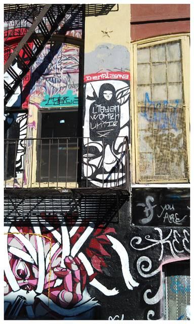 這些塗鴉上,有很多英文,這些其實是名字,有些名字是以前比較有名氣, 在這裡塗鴉過的人,有些已經過世了,所以名字就一直留在上方紀念,所以可不是無中生有的寫些好看的英文字喔。