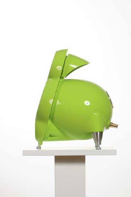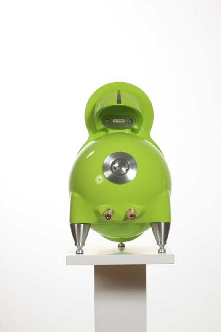 從背面望過去,乍看之下,還以為Android什麼時候推出的變形版機器人(沒辦法,那個綠看起來真的是標準的Android綠啊!),走到正面一瞧,才發現這不是給人家玩的機器人,而是給人家聽的音響Luna!