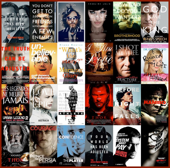 法國一位部落客Christophe Courtois實在是看膩了好萊塢電影海報,於是決定把近年來的好萊塢海報做個總整理,把這同類型設計大量收集並且拼貼,總共分成14種設計手法,像是背影裝神祕、兩人背靠背、超級大瞳孔、拼貼主角臉、大腿張開開等等,相當具有參考價值。