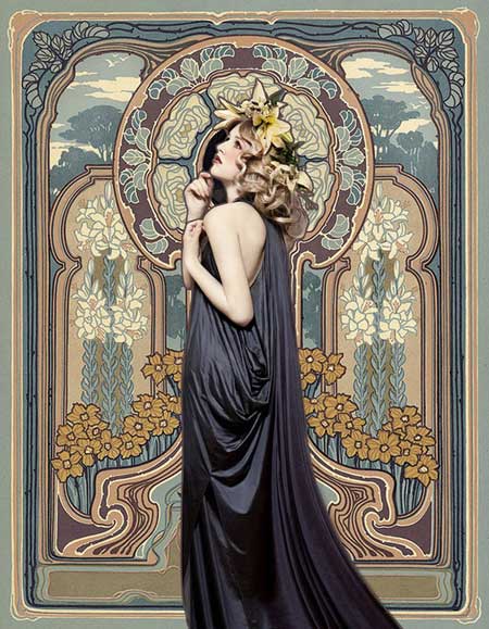 你看看,這慕夏女神不管神情跟姿態,還真是相似度百分百呢!