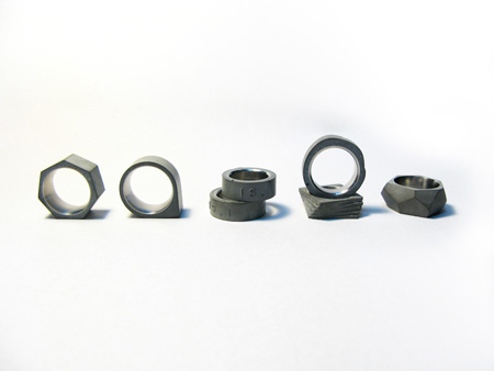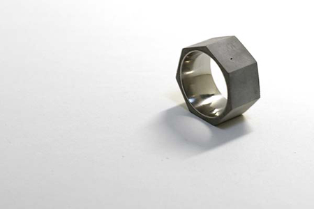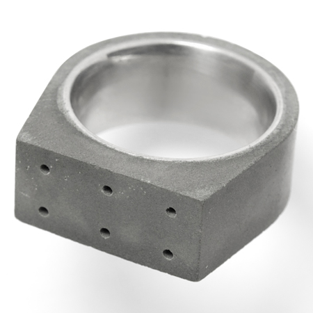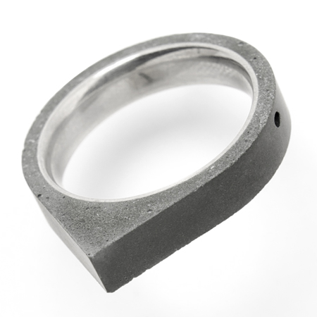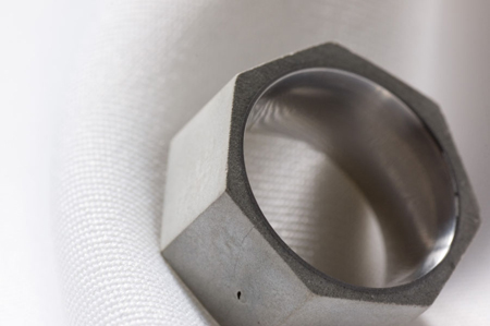 水泥給我們的第一印象是用在建築當中,被拿來作為隨身的戒指材質第一眼看到的人總是帶著驚訝與不可思議的神情。具設計師的說法,水泥是活的,隨著配戴時間的增加,水泥戒指的表面會產生各種不同的變化,甚至你不經意的碰撞也有可能對表面產生出不同的歲月痕跡。