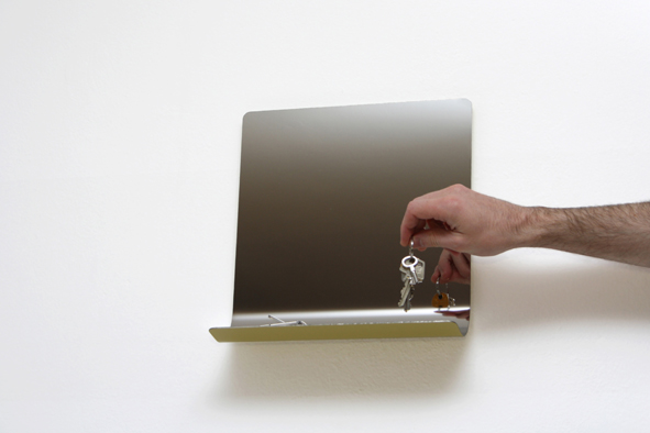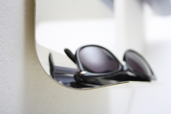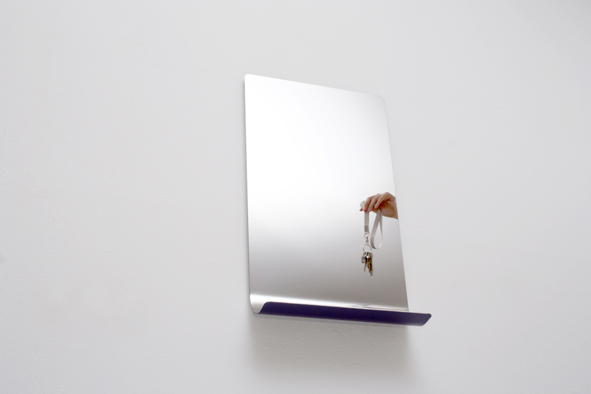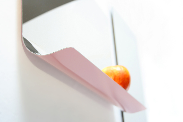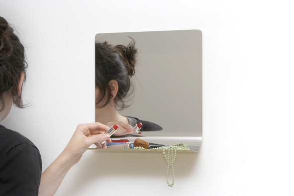 德國設計師anika engelbrecht設計了一款極簡的不鏽鋼鏡子,在底部作彎曲的設計,凹槽處可以放置平常使用的刮鬍刀、牙刷或是梳子,由於是不鏽鋼製作的所以非常耐用,而且也易於清潔,沒有死角黴菌就藏不住。