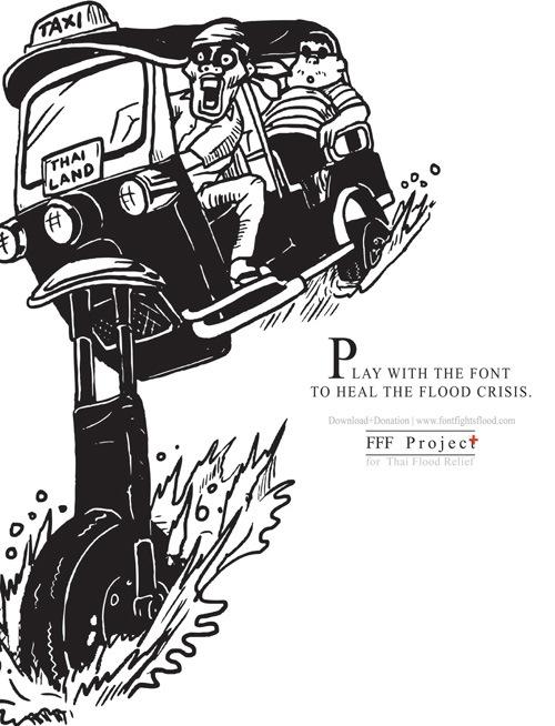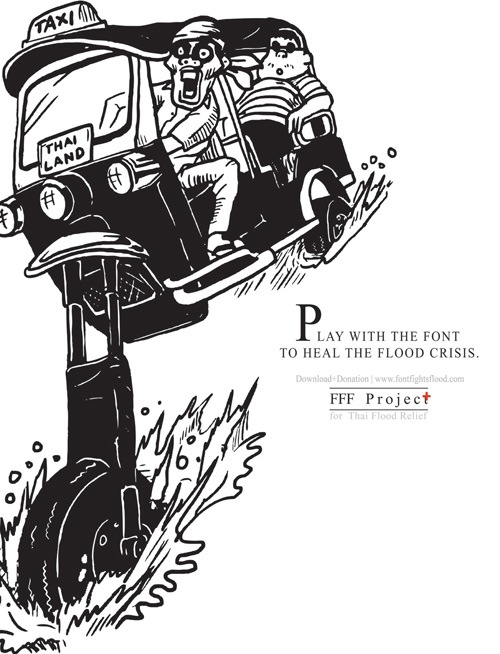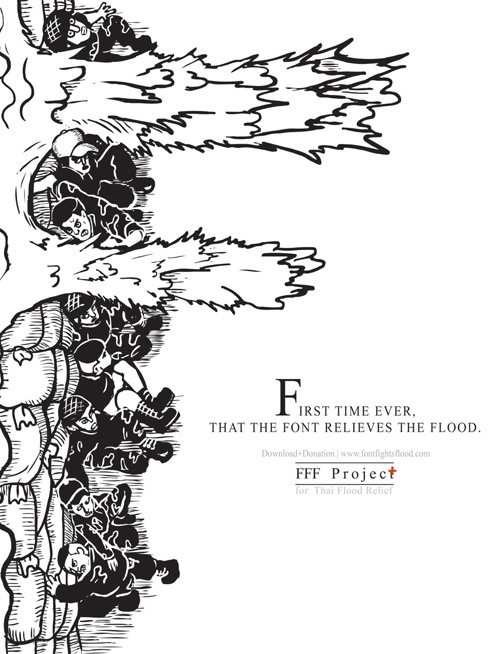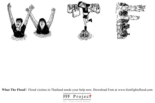 廣告商BBDO曼谷與紅十字會一同攜手發布了一套相當有意思的字體,目的是為了救助水患災民。這項企劃稱為 Font Fights Flood (FFF),讓使用者能夠在下載這套字體的同時,決定要捐贈多少錢來幫助被水患影響的災民。