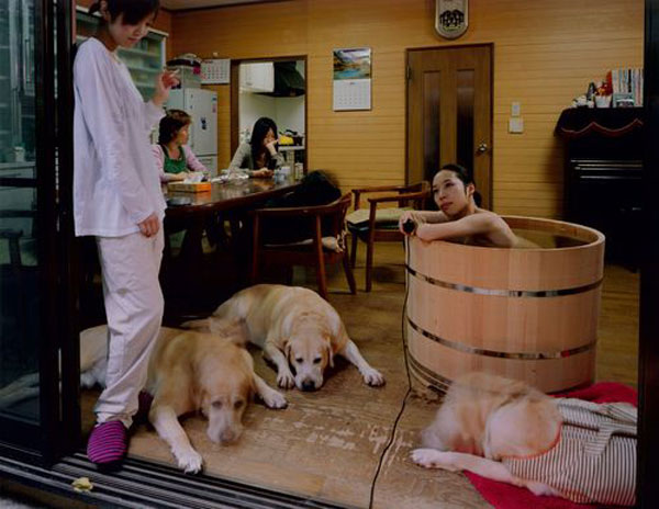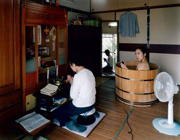 Mariko Sakaguchi拍攝泡澡自拍照的地點,都是出現在相當不搭嘎的場合,像是全家人作息的客廳、老爸的書房、媽媽念經的佛堂、亂七八糟的房間裡、課堂上或是大禮堂的舞台上,這些莫名其妙的地點加上Mariko Sakaguchi面無表情的死魚臉,有種超級詭異的衝突感,又有種說不出的喜感讓人噗疵笑出來,相當有日本人內斂的幽默感。