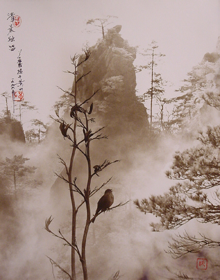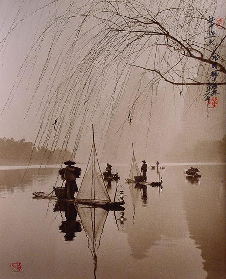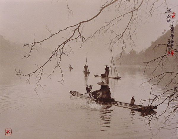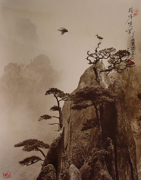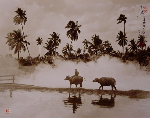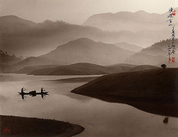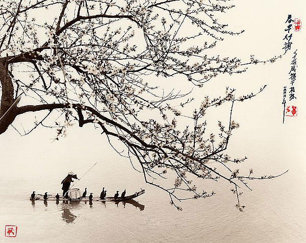 他的作品喜歡採用褐色調,相片中的主角多已白鷺鷥、竹葉、漁船等東方元素組成。加上刻意在相片裡加上題詩與落款,不注意看,很容易就看成是一幅美麗的水墨畫一般。