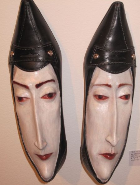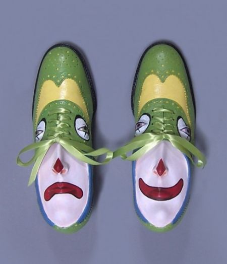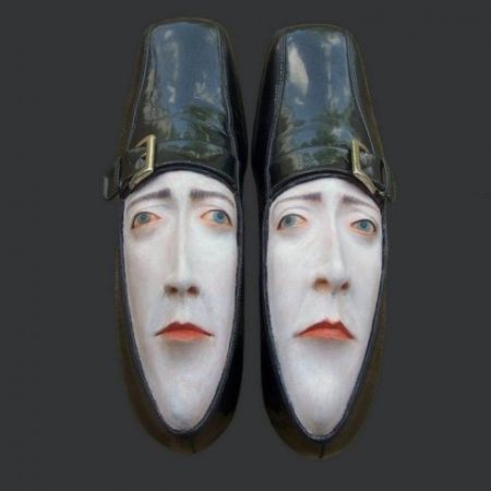 這位藝術家使用的是樹脂和一些黏土,結合了真正的鞋子,將鞋子的圖案延伸至雕塑的臉龐上,做出各式各樣的表情,兩隻鞋子就像是雙胞胎一樣的臉(或是夫妻臉?),面無表情的樣子就像在責備你把他們遺忘了一樣,看完這系列作品,可以好好反省自己是不是太久沒把當初喜歡而買下的物品拿出來擦乾淨使用了呢?