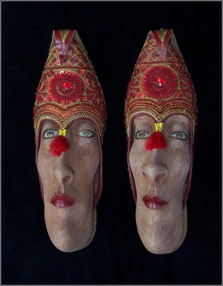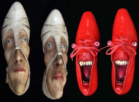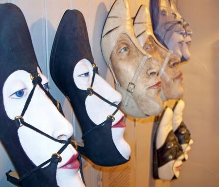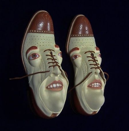 藝術家GWEN MURPHY則發想了一系列以鞋為主軸的雕塑品,不管是鞋子本身就是張臉,或是真的塞張臉到鞋子裡,瞬間都讓你的鞋子充滿情緒,變得非常不想穿它阿!(深深覺得這位藝術家也許有戀足癖)