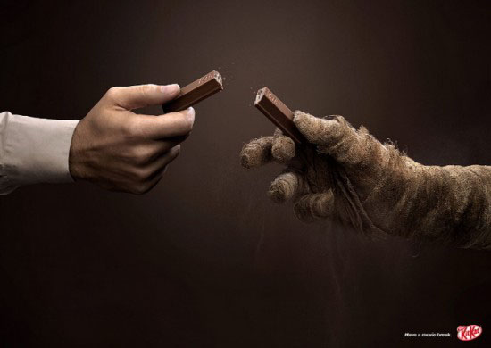 這兩張攝影作品非常容易理解,就是巧克力好吃到木乃伊願意和印第安那瓊斯分享,魔戒裡的戒魔願意和精靈公主分享…