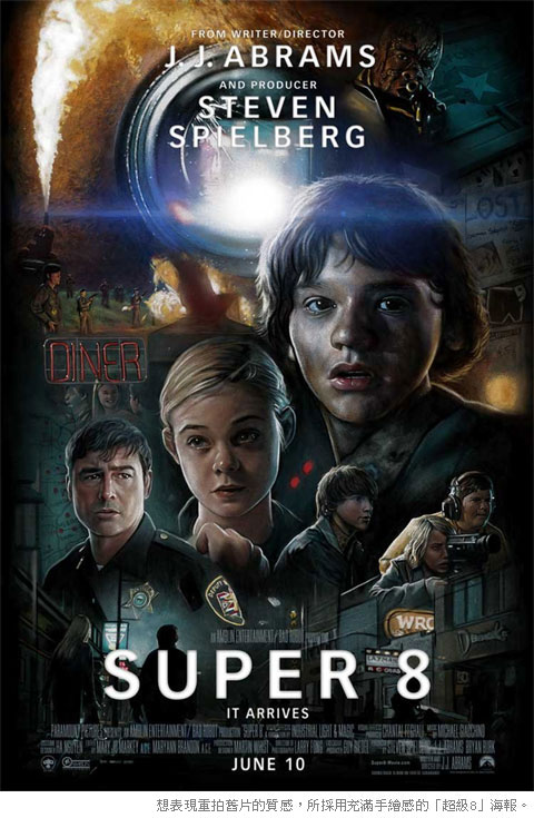 整體看起來海報大多都是使用照片,一目了然的方式讓欣賞電影的人可以馬上知道這部電影的卡司,或是什麼故事,小部分的海報採用卡通(因為是卡通電影阿),這邊特別提出電影「超級8」的海報採用的手繪風,讓人聯想起電影海報之父「Drew Struzan」(事實上「超級8」的海報就是出自這位大師之筆,另外知名的還有新拍的「星際大戰首部曲」海報,以及「印第安那瓊斯:水晶骷顱頭」的海報),或許作者沒看過台灣古早味的電影院看板吧!