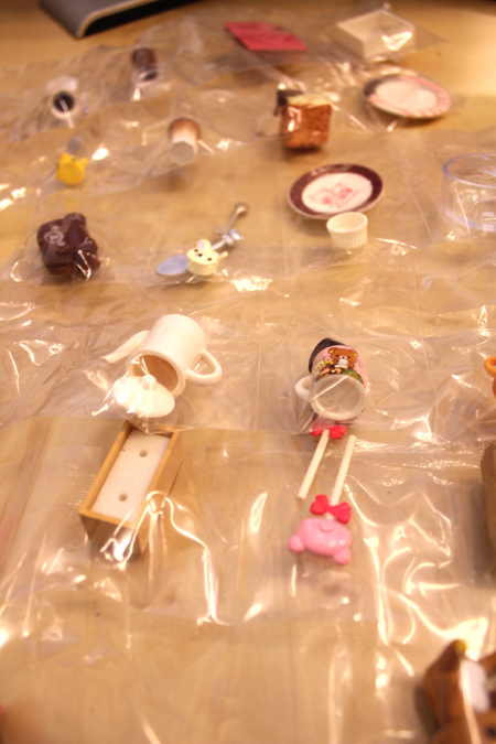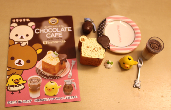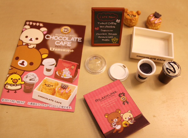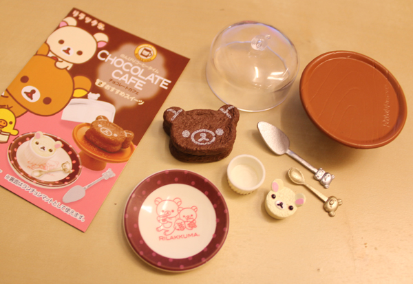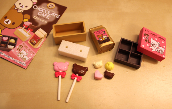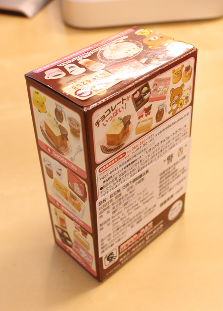 從外觀看起來,使用大量的巧克力色和粉紅色,加上畫龍點睛的拉拉熊小臉,是不是明知道是模型卻肚子餓了起來阿!一大盒中有六小盒,一次買一大盒的話就可以六種款式一次擁有,單買一盒就只能碰碰運氣隨機抽抽看囉!不管是大盒還是小盒,盒子上很生火的設計跟配件說明,都會讓人不知不覺中已經打開錢包掏錢了阿!