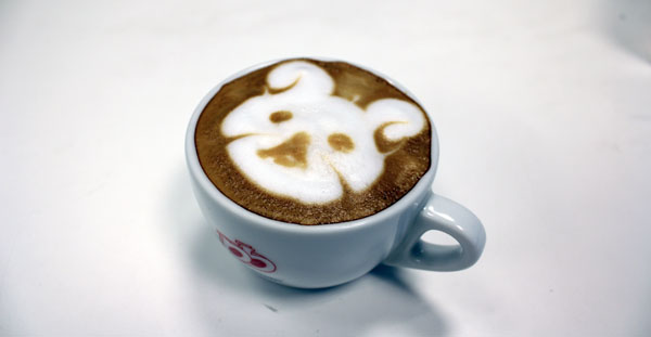 ▲由秦大琳咖啡拉花高手創作,創作工具:咖啡一杯、熱牛奶、湯匙。