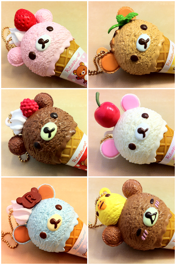 本次拉拉熊帶著夏天的冰涼甜蜜滋味來到大人物,又是掀起一股辦公室女性同事們的一陣尖叫阿!(連男同事都忍不住直呼太可愛了!)冰淇淋挖杓霜狀裂開的質感,和幾乎微微融化的亮亮奶油超乎想像中的神似,而每隻拉拉熊都有不同的「頭飾」,甚至連表情都不一樣,真的很想要馬上蒐集一套是不是阿!