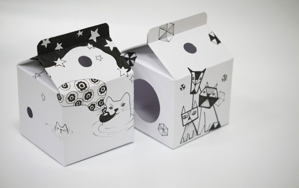 結合了牛奶盒與貓屋元素的「MILK BOX」,看起來就像是放大版的牛奶盒,組裝的過程也相當簡單,就像是在組合玩具屋般簡單,而除了貓屋之外,MOISSUE還設計了兩款壁貼貼紙「Hide and Seek / 躲貓貓 」、「Daydream / 白日夢 」,讓你可以自己裝飾你的可愛貓屋,甚至還可以自己DIY手繪你獨一無二的貓屋圖案喔!這是這種童趣又俏皮的生活趣味,我們感受到MOISSUE團隊對於生活小確幸的細心,讓MILK BOX除了是貓屋之外,更像是你與貓咪們的共同創作。
