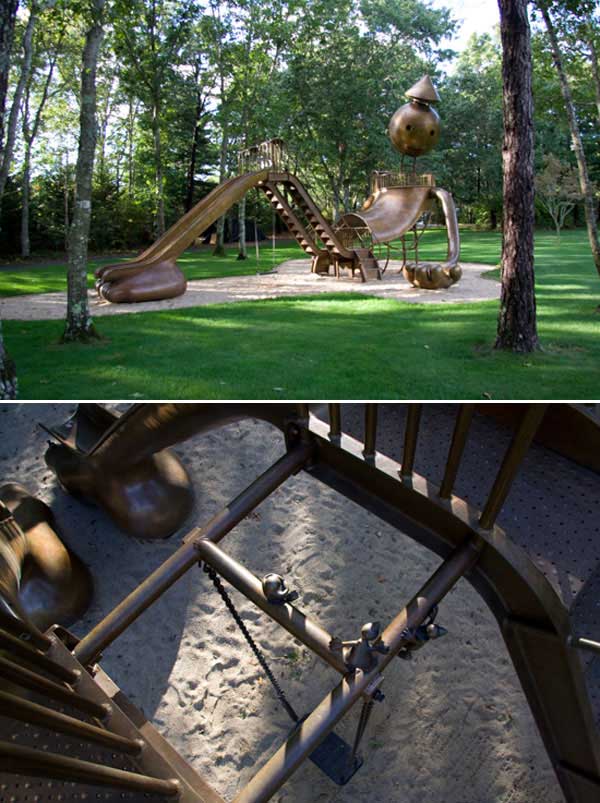 設計師Tom Otterness以機器人為出發點,設計出十分有趣的溜滑梯。(美國紐約)