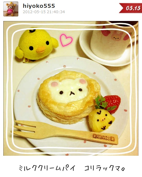 當然,hiyoko555所做的料理不單單只有便當跟家庭料理,連甜點都難不到他呢!各式各樣的美味甜點,做成拉拉熊的模樣,是不是很捨不得動手吃它呢?
