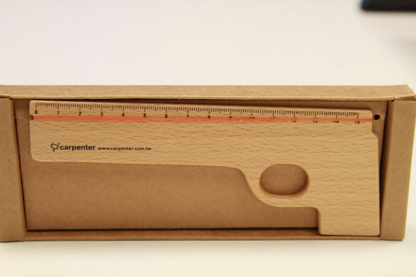 最後一款要介紹的是同樣跟大家的兒時回憶產生共鳴的木作商品,是很容易「擦槍走橡皮筋」的「槍尺」。