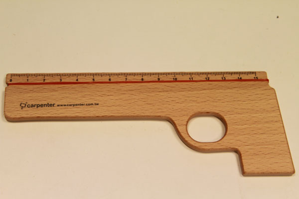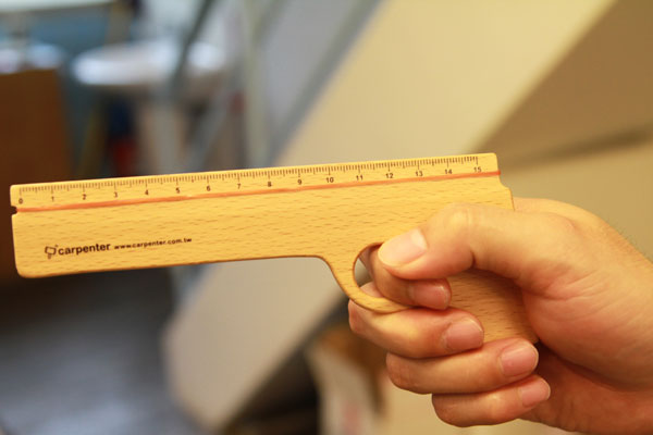 小時候大家一定都玩過用木筷子做成槍射橡皮筋的把戲,橡皮筋槍這玩意兒在我們的童年裡佔了一席重要的地位,同樣地,尺這個上課必備的文具,也是充滿兒時回憶的,當橡皮筋槍與尺結合後,槍尺這個具趣味與功能性兼具的文具就此誕生啦!