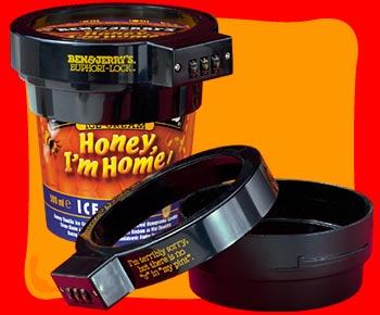 為了避免這種情形發生,美國一家國際連鎖冰淇淋品牌「BEN & JERRY’S」,在冰淇淋蓋子設計了「冰淇淋密碼鎖」(Ben & Jerry's Euphori-Lock)。只要有了這個鎖,放在冰箱裡的冰淇淋就再也不會被偷吃了!
