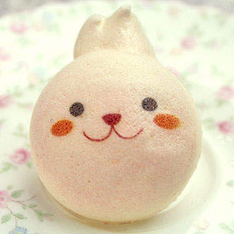 跟馬卡龍一樣,有著圓圓的外形。放入口中之後是卻是棉花糖般甜蜜鬆軟的口感。這些馬卡龍上畫著一張張可愛小動物的臉。微笑著的粉色小兔子、黑白的熊貓、棕色的小猴子,可愛地閉著眼睛的綠色小青蛙、巴眨著無辜大眼的小老虎…等等。讓小編我看了直喊:「啊~~實在是可愛的太犯規了啦!!!」