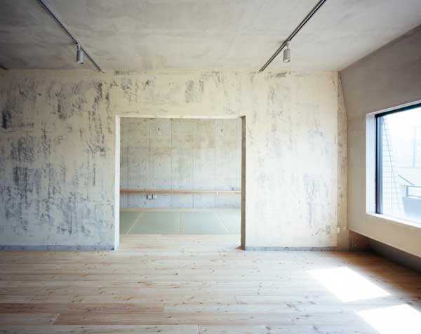 你身旁的親友買過預售屋嗎?如果你曾陪他們到過建案現場,在交屋前應該能看到完全未處理的原始狀態,也就是俗稱的毛胚屋。你可能會問:「這樣能住人嗎?起 碼要有裝潢木作,做個天花板吧」,這的確是大多數人對家的期待,在我們觀察的設計作品中,如果設計單位本身也是建築單位的話,室內的「裝潢」反而喜歡走簡 單路線,不曉得這會不會是建築師跟室內設計師對室內空間的看法不同。來自日本的 Naruse Inokuma Architects 成瀬・猪熊建築設計事務所,即符合我們的觀察現象,這種看似清水模的牆面,搭配米黃色的補土處理,讓現代日式風格有了新的突破。