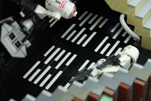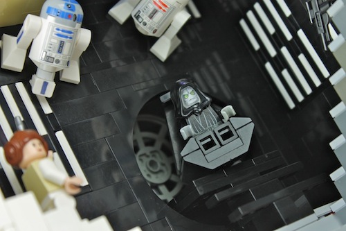 「經過六個月的製作,這是我做過最大的樂高作品」Vermeesch表示,「這個作品裡充滿著玄機,裡頭有一齣逆時針上演的「星際大戰三部曲」,在作品背後還有個迷你版的星戰電影院。」而這個充滿巧思的星戰電影院,則是Vermeesch用iPod touch當成電影螢幕上演10分鐘常的樂高星戰遊戲片段,相當有意思。