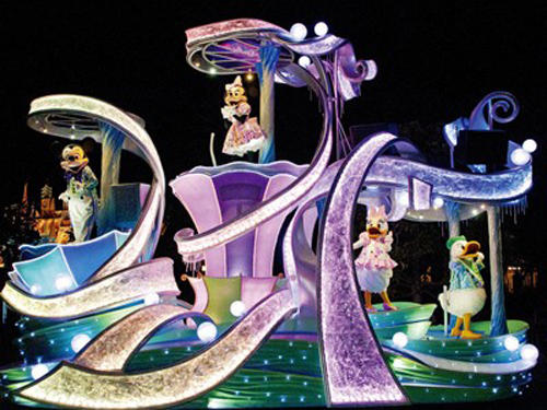就像愛麗絲擁有自己的奇幻仙境一樣。對許多大小朋友來說,迪士尼樂園就像是將夢想中的樂園具現化一般,充滿歡樂與歡笑。夜間的迪士尼樂園更是美不 勝收,精美絕倫的公主城堡掛上五光十色的彩燈,在炫爛的大型煙火照耀中, 搭載著迪士尼卡通明星的各式花車,配合著優美的迪士尼樂曲紛紛登場! 在燦爛 的燈光下,它們將帶來奇幻的夜間遊行將與遊客一同度過愉快的夜晚,讓東京迪士尼樂園的夜晚更加美麗浪漫!