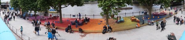 這些沙子依照彩虹光譜的色彩放置,可以讓來到公園的大朋友小朋友一起進入這個全長5000公分的沙坑中玩耍,透過互動的方式,讓這些色彩與色彩間產生模糊地帶,進而出現新的色彩,漸漸的就會變成漂亮的光譜,多采多姿的雕塑品,也變成了在這個巨大沙坑中可以坐臥的長椅,讓人印象深刻阿!這個戶外展覽從6月16日開幕至9月9日,剛好有去英國倫敦的朋友可以順便去看看吧!彩虹公園相關網頁請點這邊彩虹公園沙坑,讓小朋友在彩虹中玩耍