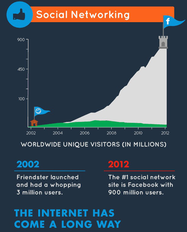 2002年的最紅的交友平台叫做「friendster」,當時剛成立就已經高達了300萬個用戶,但是隨著時間過去,現在雖然已經有了一億個使用者,卻比不上facebook的9億用戶。