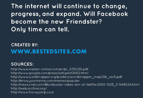 網路不停的繼續改變我們的生活,進步並且擴大,誰知道現在網路正紅的facebook會不會哪天也被什麼新起的交友服務給取代呢?只有時間能證明一切。
