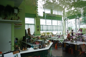 另外兩棟並列著的玻璃屋是勤美術館駐村店家,左邊的是「綠色寵物之屋」,誰說寵物一定要是動物呢,綠色的植物也可以是心愛的寵物,花草植物可以撫慰生活忙碌的現代人的心靈,同時也可以美化空間,節能減碳也帶來更綠色的環境;右邊的「光之乳酪」有著用心手做的北海道乳酪,濃郁的乳酪味道飄香在園區中,舒適的休憩空間讓身心靈放鬆,在逛完美術館後來口新鮮的乳酪,讓腦袋和身體都滿足了。