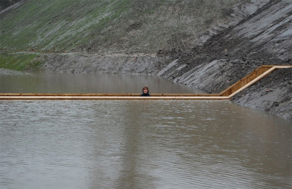 建築師事務所「RO-AD」就利用了建築師神力把河流給分成了兩半。在視覺上幾乎看不到橋,不太會破壞美麗的風景,而過橋的人們也可以用非常特殊的體驗親近河流。