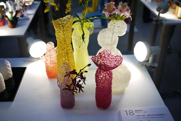 這個由設計師黃品甄所設計的「脫殼系列Ecdysis」花器作品在2012年台灣設計師週中展出,穿過驗票口後,一直往前直走到底撞牆就可以看到主題聯展的十大主題之一「Re_Form」,這奇妙的作品就在這個展區內呈現。