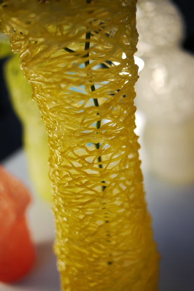 絕對不是學史蒂芬周用雙氧水加水晶膠做出來的(被毆),而是用先用冰塊雕塑出想要的造型,擠上熱融膠後等冰塊融化,如此便能完成這獨特的創意花器。