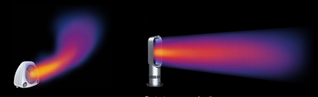 James Dyson說:「其他電暖器靠效率差的馬達或是容易沾滿灰塵的扇葉來運轉,所以當機器開始加熱,你往往感受到的是僅部分被加熱的室內空間,並往往伴隨著陣陣燒焦味。為了解決這樣的問題,由22位熱動力學與流體力學專家組成的戴森研發團隊成功的找出新方法,讓整個空間均勻加熱,且不再需要擔心焦味及使用安全。」
