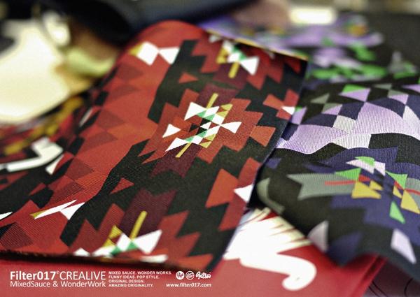 這次跳脫了原本單純的美式圖像,Pattern為考量點切入,應用了印地安民族風和玉點底紋這兩種手法,表面上看似毫無干係,但卻依然圍繞著Pattern這個大方向演進;唯一不同之處是加入了以往鮮少出現在Filter017創作內容的動漫元素。