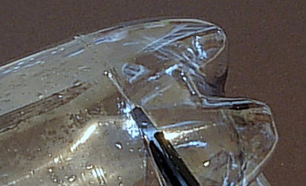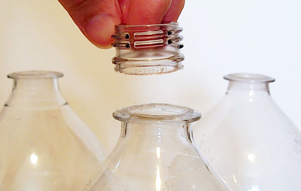 移除寶特瓶上的標籤,並且將寶特瓶的底部與頂端切齊。