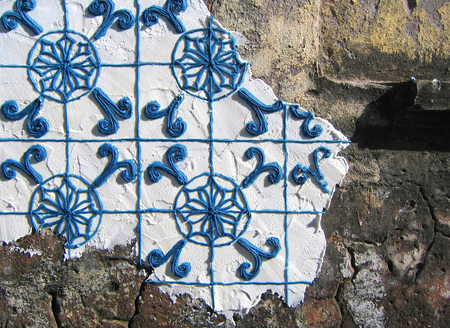 話說回來,為什麼說這材料具有特殊歷史意義呢?因為在大航海時代南美洲國家被殖民後,向外輸出大量的蔗糖與辛香料,相當喜歡這段歷史,同時也很有研究的 Miller 選擇以糖作為主要材料,在巴西、印度,以及她所在的加拿大進行藝術創作。上圖的牆面創作是她在巴西時利用糖霜補平坑坑疤疤的牆面,再上面繪製上當時(十五世紀)風格的花紋與圖騰來紀念這段歷史。