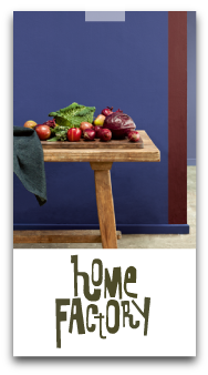 在home factory這個主題中,則用配色描繪出小規模的手做與在地感,將都市有的巨大尺度拉回到緊密鄰裡間的情感,運用自然介蔬果會有的薑黃色,帶有黃色的青草綠,柿子的橙紅與茄子的紫,強調工藝與永續經營的在地商店與居家生活的連結。