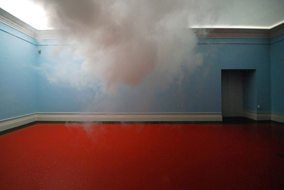 荷蘭藝術家 Berndnaut Smilde 利用造霧機(Fog Machine)噴出一些煙霧,配合預先計算過室內濕度及溫度的數值(據說亮度也有納入考量),在室內塑造出十分擬真的雲朵,雖然它只是個美麗的空殼,不具備降雨能力,也無法持續成型,不過光是看到一朵雲在眼前飄忽忽地的模樣,就已經十分滿足了!